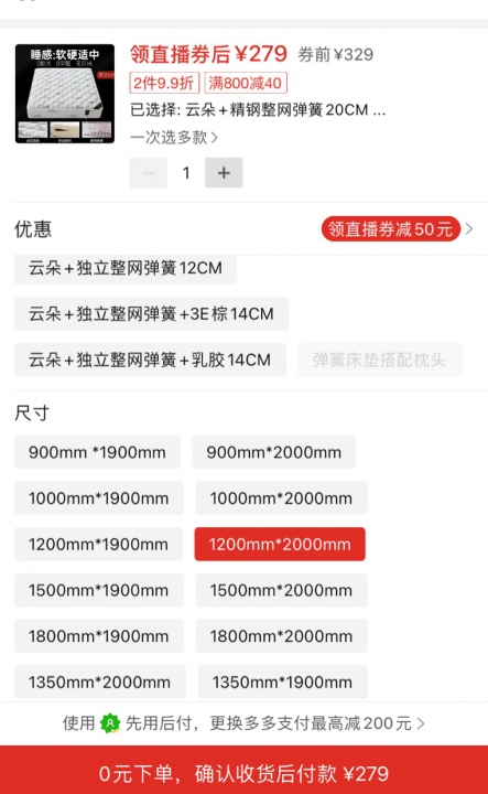 诗卡伦品牌pdd购入 1.2米×2米 原价280左右 160出随便你们去搜这个牌子床垫特意选了没有甲醛的 很软 很舒服