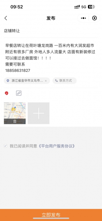 义乌荷叶塘早餐店转让